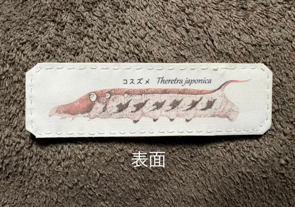 スズメガ幼虫の魅力を手元に感じる布製しおり/コスズメ褐色型