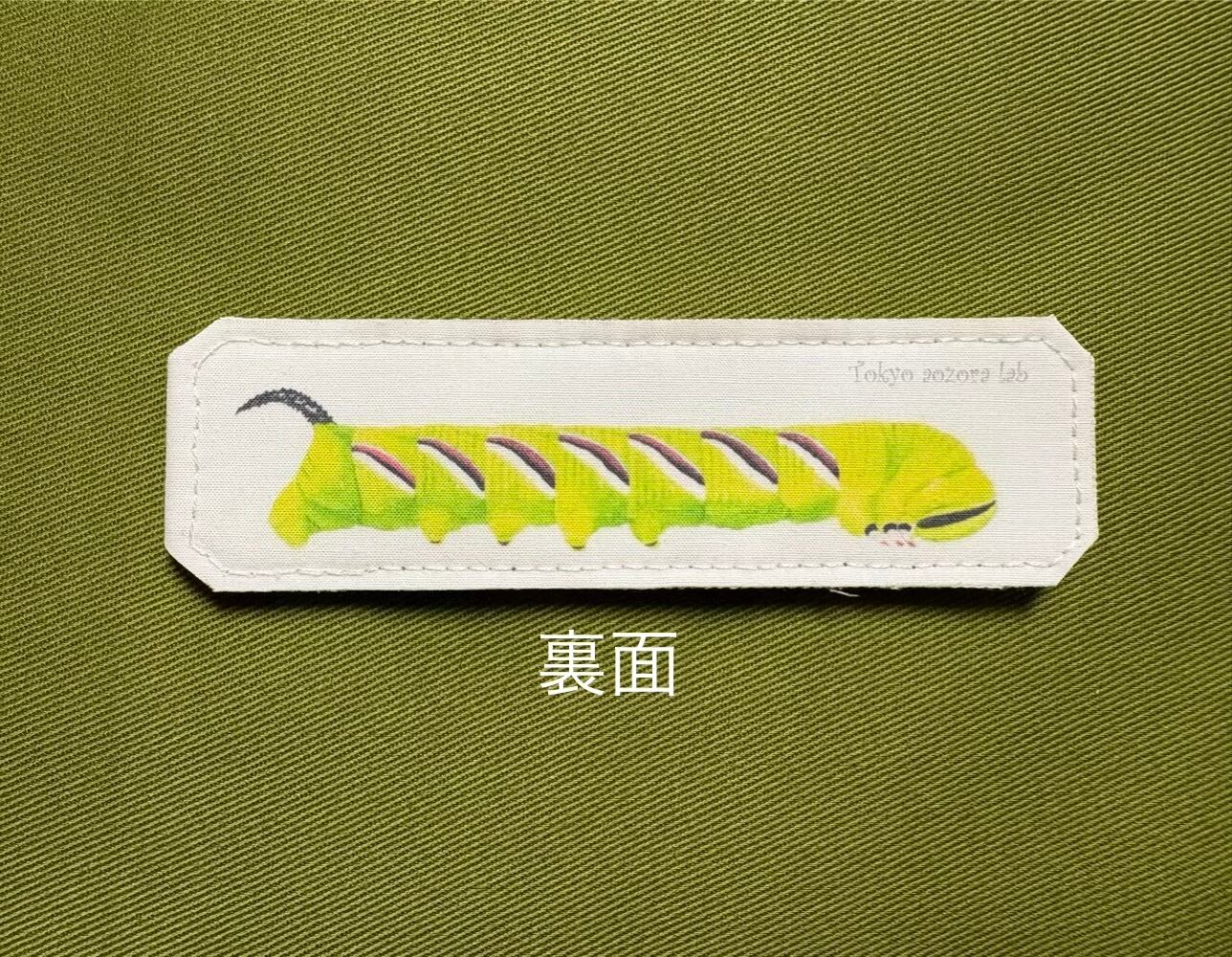 スズメガ幼虫の魅力を手元に感じる布製しおり/コエビガラスズメ